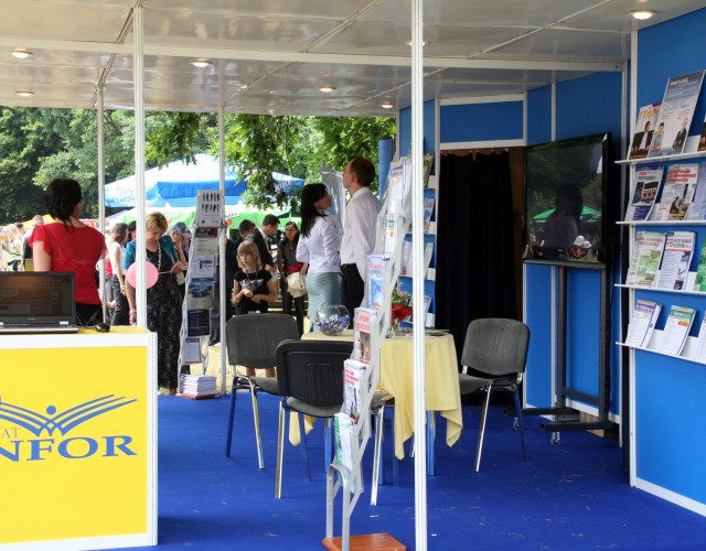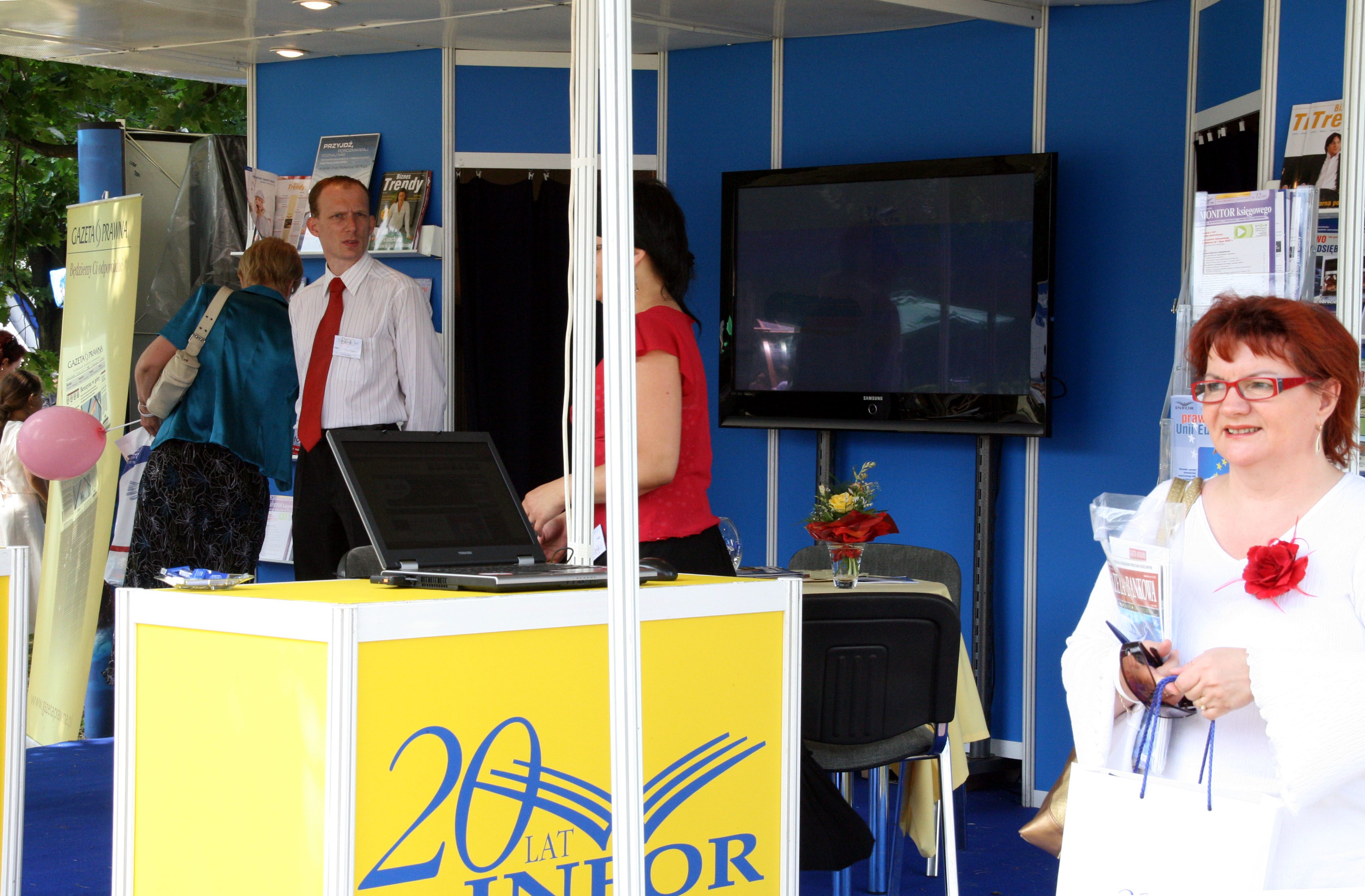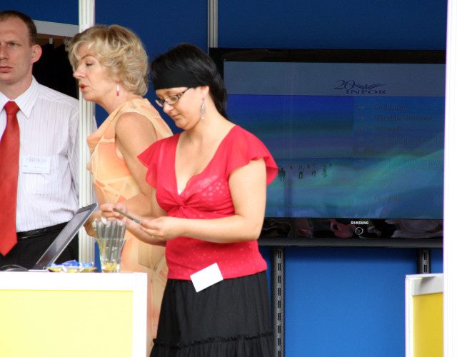 Monitor skutecznie przyciągał uwagę odwiedzających stoisko, prezentując materiały promocyjne INFOR w wysokiej jakości przez cały czas trwania targów. Mobilna podstawa pozwoliła na elastyczne pozycjonowanie ekranu w zależności od natężenia ruchu.