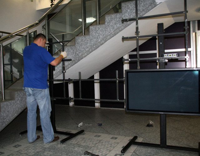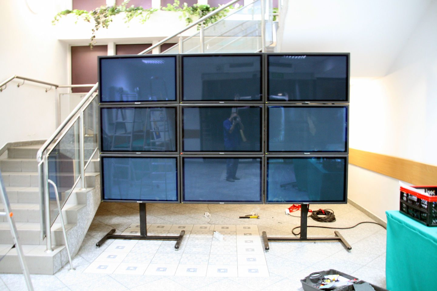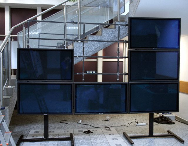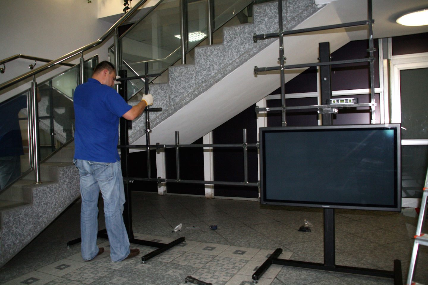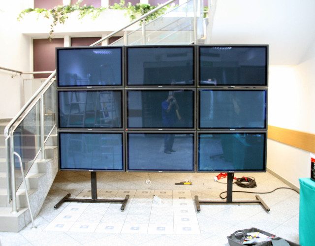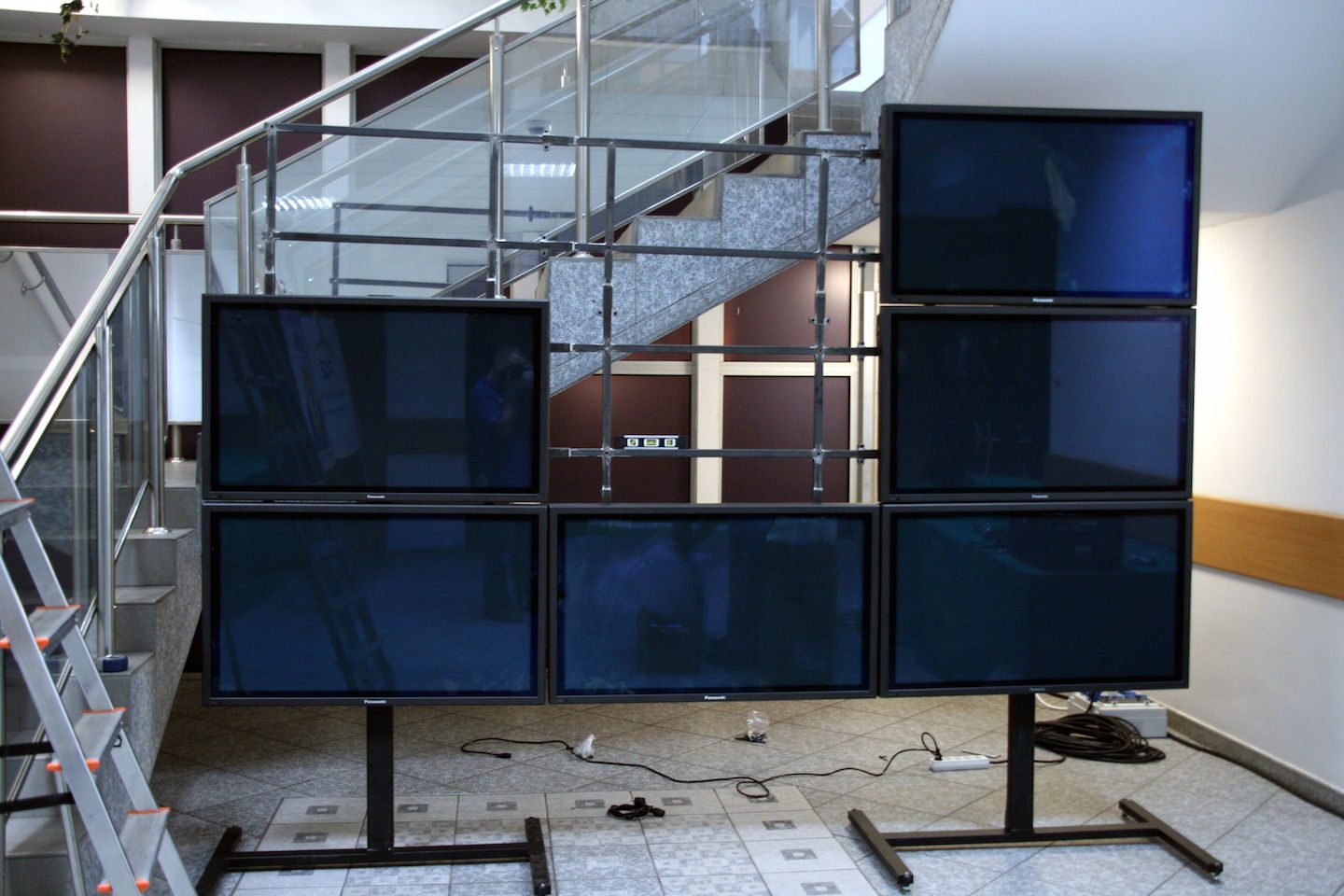 Zaprojektowanie i budowa stabilnej konstrukcji pod 9 monitorów plazmowych w konfiguracji videowall.