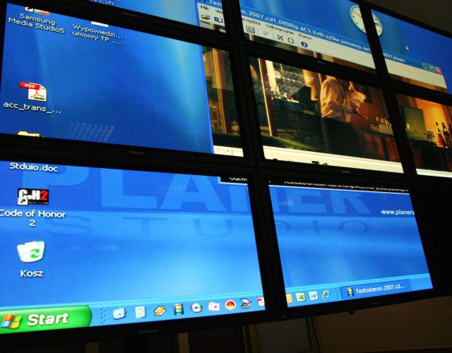 Montaż monitorów PANASONIC, konfiguracja systemu wyświetlania treści na videovallu.